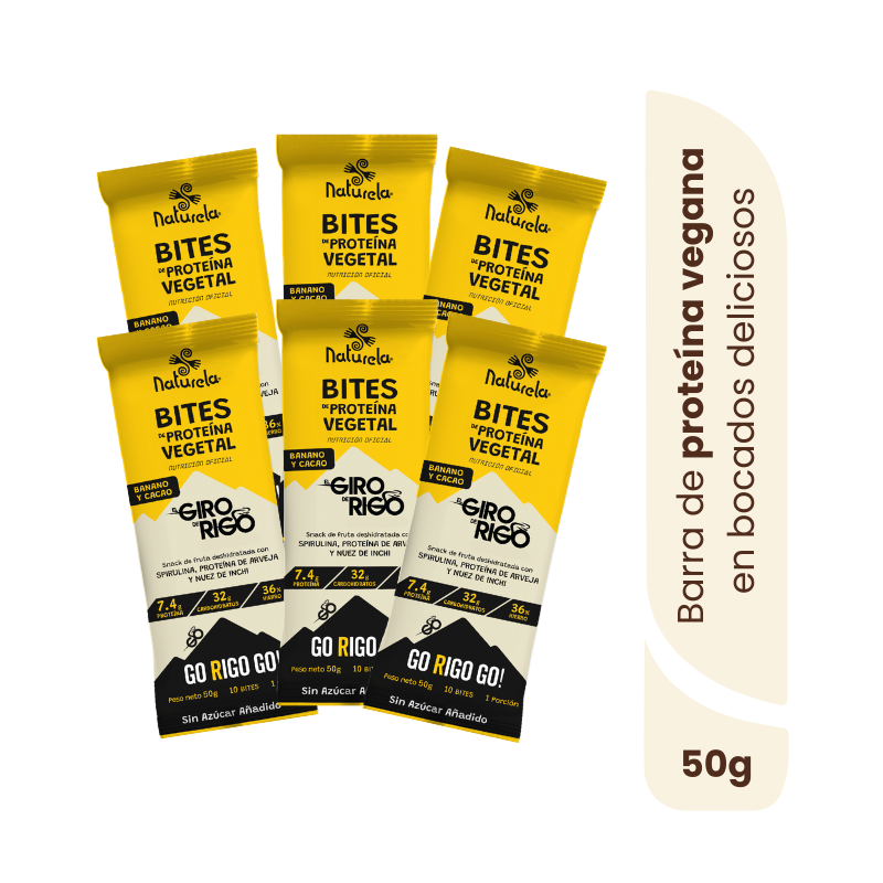 Explora una experiencia novedosa con los BITES DE PROTEÍNA VEGETAL, una barra de proteína en bocados blandos y deliciosos. Cuidadosamente elaborada con una mezcla poderosa de ingredientes naturales. Sumérgete en la suavidad de sus ingredientes, el balance perfecto de aminoácidos de la proteína de alverja y la spirulina, la textura crujiente de la nuez de inchi y la quinua. Déjate llevar por el intenso sabor a banano y cacao. Cada bocado es una explosión de sabores y texturas que deleitará tus sentidos, mientras te brinda la energía sostenida y nutrientes esenciales que necesitas para enfrentar tu competencia con fuerza y entusiasmo.