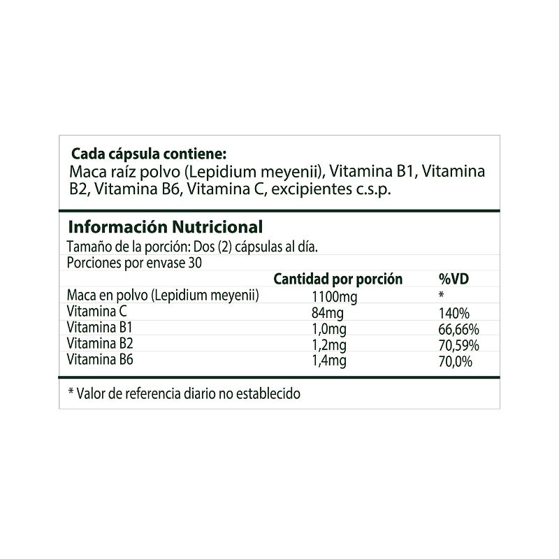 ✔ Fórmula sinérgica: maca + complejo B + vitamina C en un solo producto.