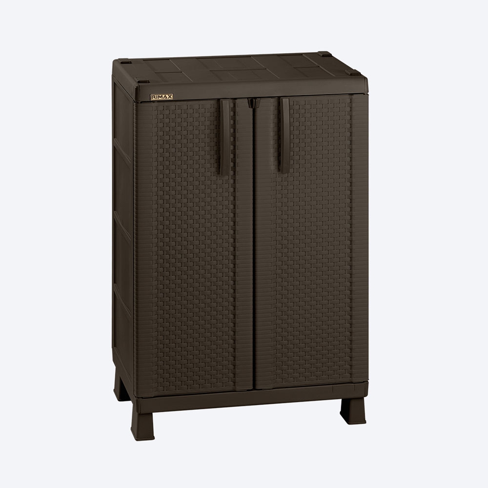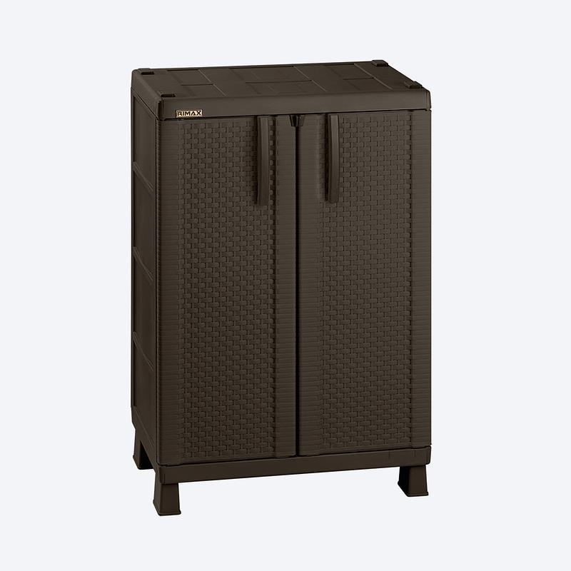 Armario Mediano con textura Rattan, con 2 entrepaños ajustables que resisten hasta 25 Kg cada uno.