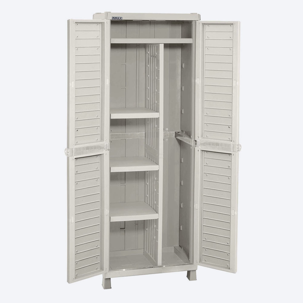 Armario Multiusos, con 3 entrepaños ajustables que resisten hasta 25 Kg cada uno y división central que permite almacenar de la mejor forma los elementos de aseo del hogar .