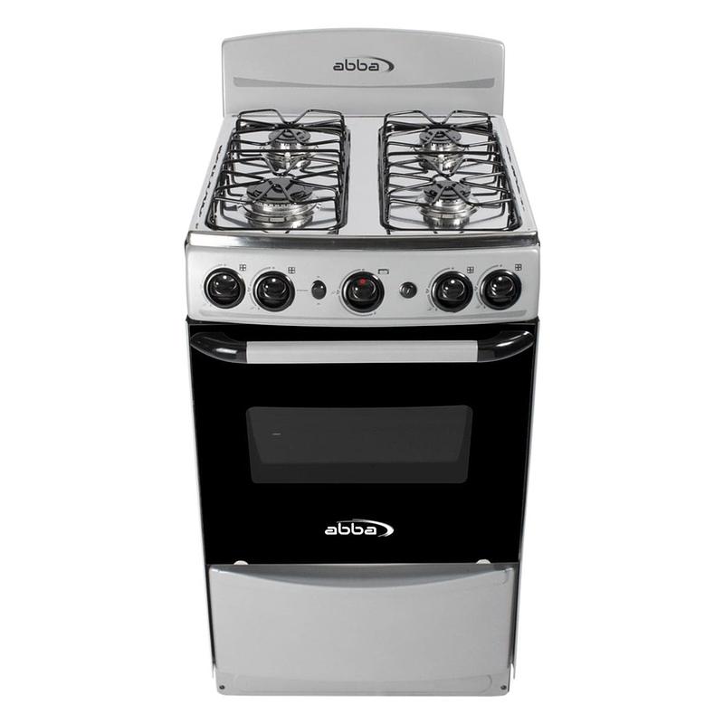 Estufa en acero inoxidable de piso con horno y gratinador a gas con 4 puestos; 3 quemadores rapidos y 1 ultra rapido. Coccion rapida y de facil limpieza.