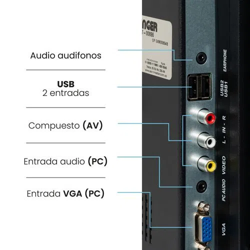 Televisor de 32" (80 cm) HD, TDT, Entrada para PC, DVB T2, incluye soporte de pared.