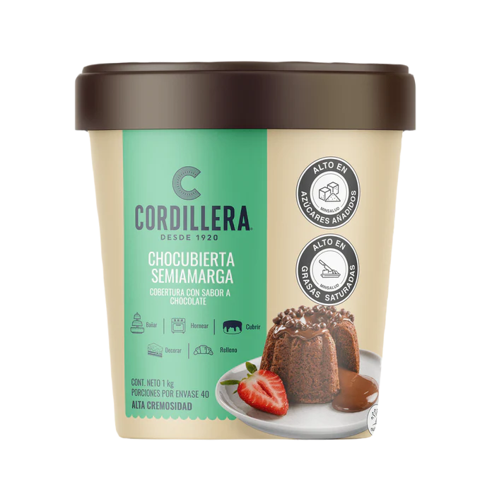 Cobertura sabor a chocolate semiamargo, ideal para baño de tortas, fuentes de chocolate y maquinas cubridoras.