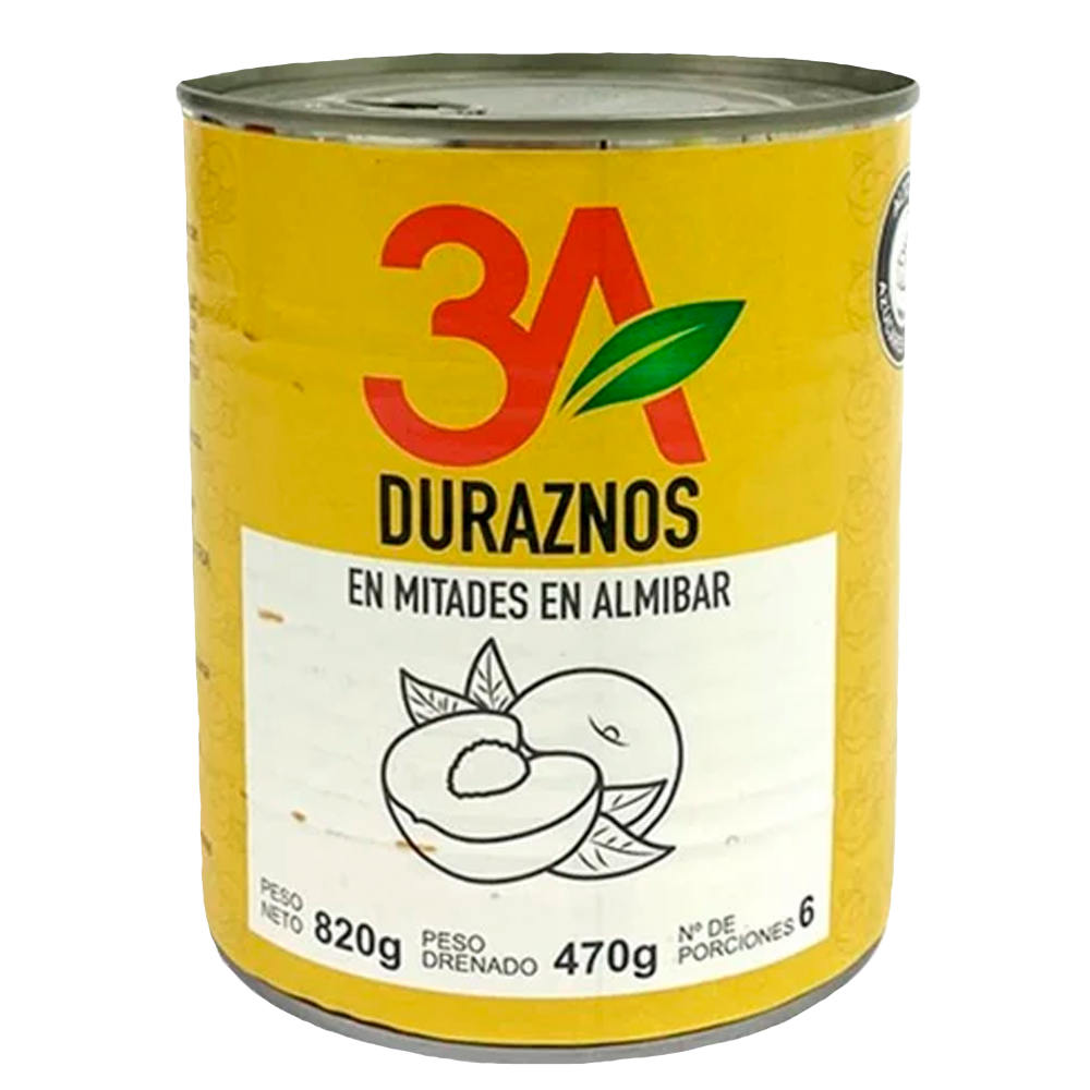 Durazno en Mitades elaborado a partir de duraznos frescos y maduros, en mitades Contiene un liquido de gobierno compuesto por agua, azúcar y ácido cítrico.