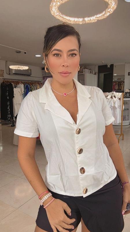 Linda blusa blanca de diseño clásico con botones frontales y cuello elegante. Su tela fresca brinda comodidad y un estilo chic