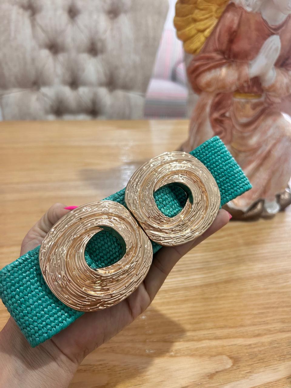 Cinturón verde menta con herraje dorado, elaborado en yute, combínalo como prefieras, lucirás hermosa.