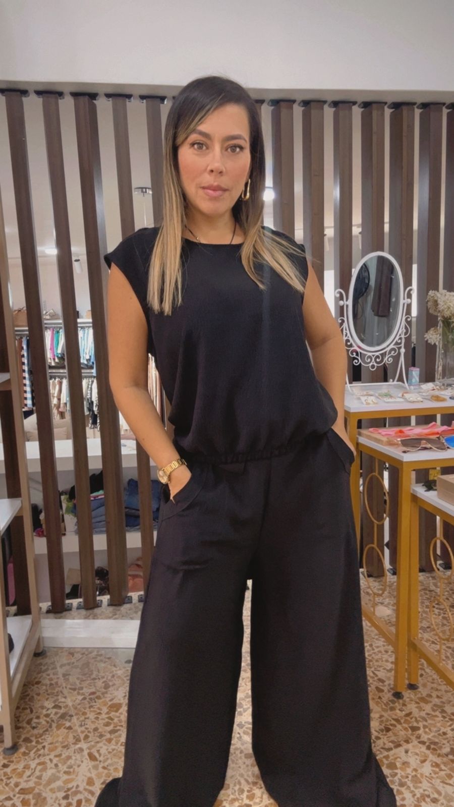Set Negro Glam – Chaleco Y Pantalón Palazzo Elegante
