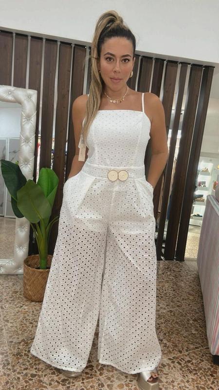 Enterizo confeccionado en algodón suave y fresco, acabado con delicados detalles de corte láser que aportan textura y un toque moderno.
