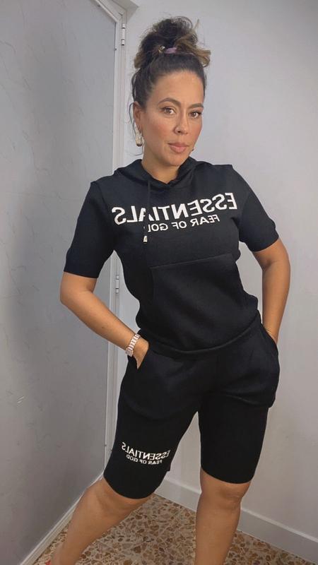 Set Deportivo Negro Con Biker Y Hoodie Manga Corta