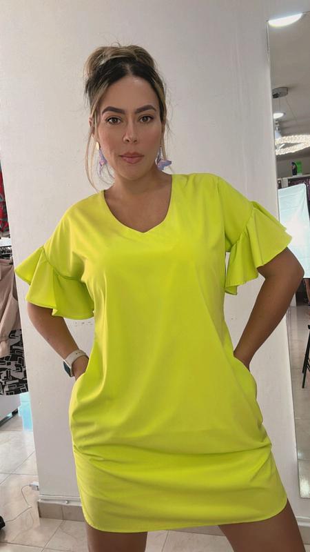 Vestido verde neón, manga corta en bolero, comodidad, frescura y belleza en una sola prenda.