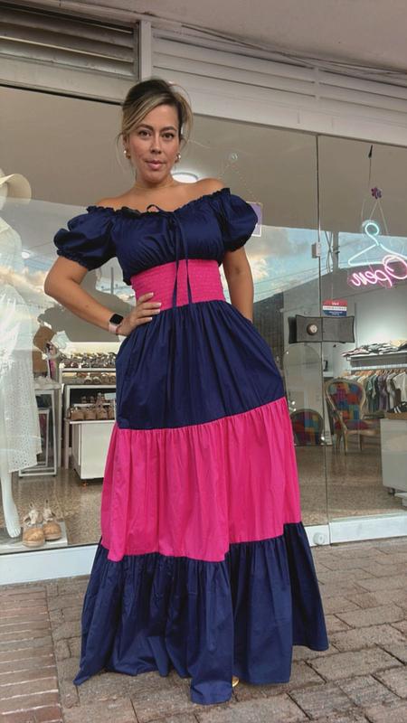 Vestido Largo Bicolor En Popelina