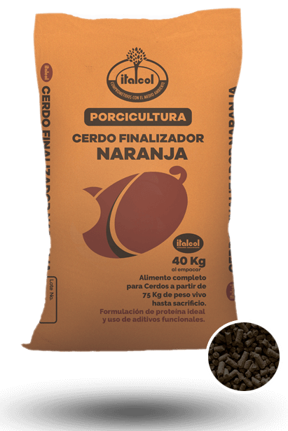 Las mejores ofertas y promociones en alimentos para cerdos, concentrados para cerdos, Concentrados cerdo finalización, productos línea naranja italcol. Es un alimento completo diseñado para ser suministrado a cerdos a partir de los 75 – 80 kg de peso vivo, durante las últimas tres semanas de la ceba (es decir las tres semanas previas al sacrificio).