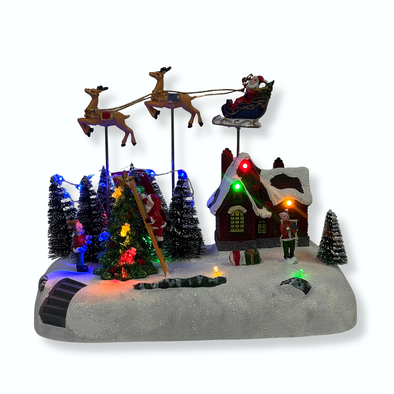 Villa navideña decorativa, detallada y luminosa. Ideal para mesas, vitrinas o centros de decoración festiva.