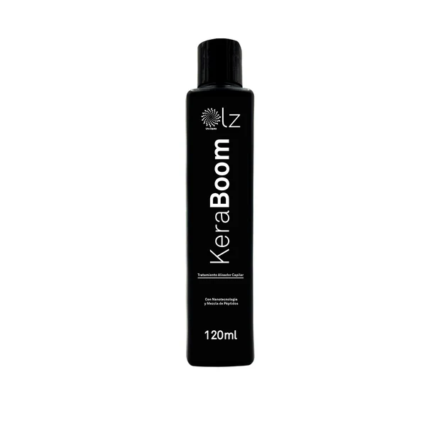 KERABOOM es un tratamiento de alisado capilar libre de formol que utiliza nanotecnología para penetrar más fácil la estructura capilar, brindando una excelente realineación o alisado a todo tipo de cabello, proporcionando además acción anti-frizz, reducción del volumen de mechones rebeldes, brillo, suavidad y sedosidad. Contiene también una novedosa mezcla de péptidos que ayudan a darle nutrición, fortalecimiento, protección e hidratación al cabello. Así, de adentro hacia afuera reconectan las cadenas de aminoácidos que dan estructura, elasticidad y fuerza al cabello, dando una apariencia saludable a la hebra capilar.