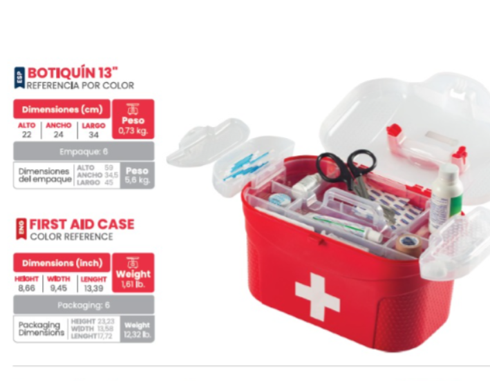 Botiquín de Primeros Auxilios 13″ Plástico Rojo con Organizadores