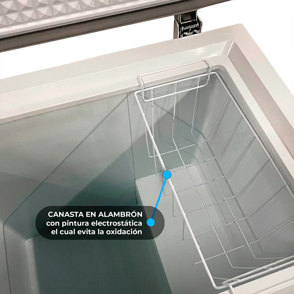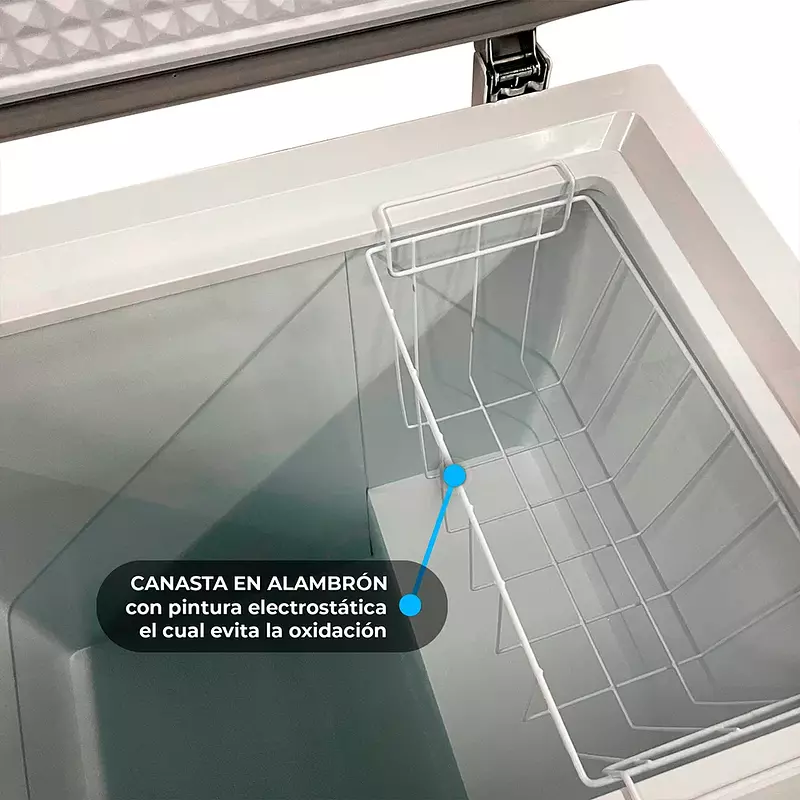 Con un cuerpo y tanque en lámina galvanizada prepintada, este Congelador es más que una inversión, es una garantía de resistencia al óxido y durabilidad a largo plazo.