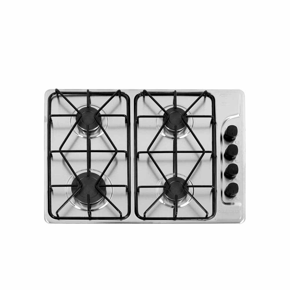 Estufa Challenger SP 5040 de empotrar en acero inoxidable con 4 puestos gas natural, quemadores SABAF y encendido electrónico.