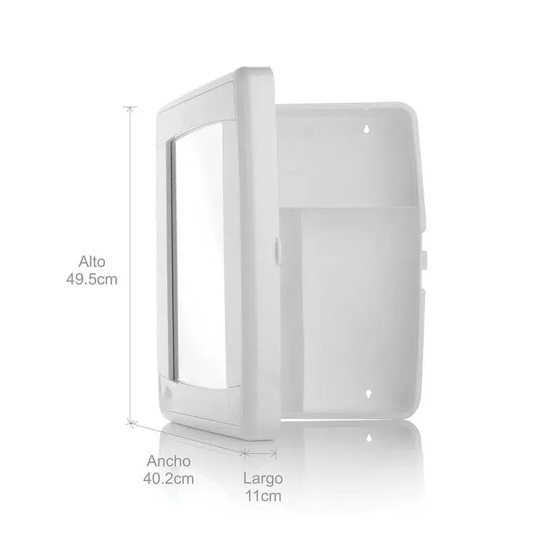 Gabinete con puerta lateral para guardar cepillos de dientes y cuchillas de afeitar. Fácil de armar. Doble espacio interior para almacenar envases.