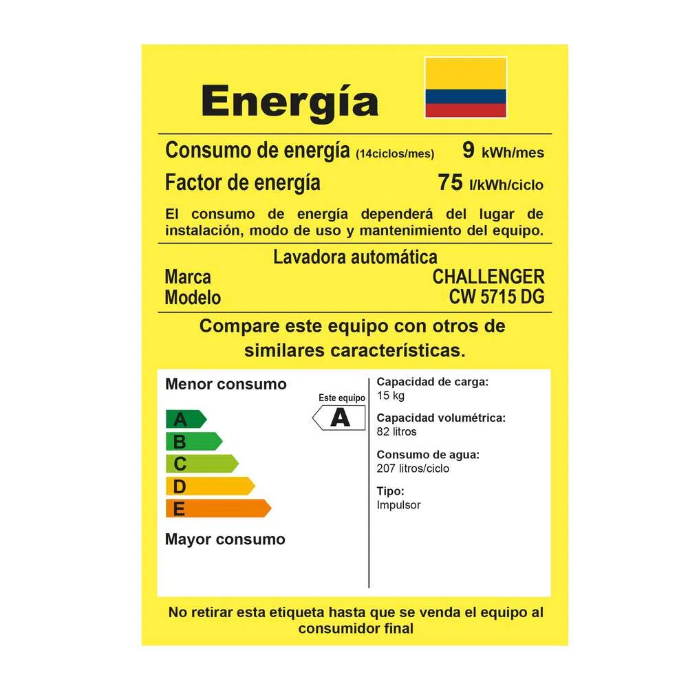 Lavadora Challenger Automática Gris 15kg (33lb) - Cw5715 Dg