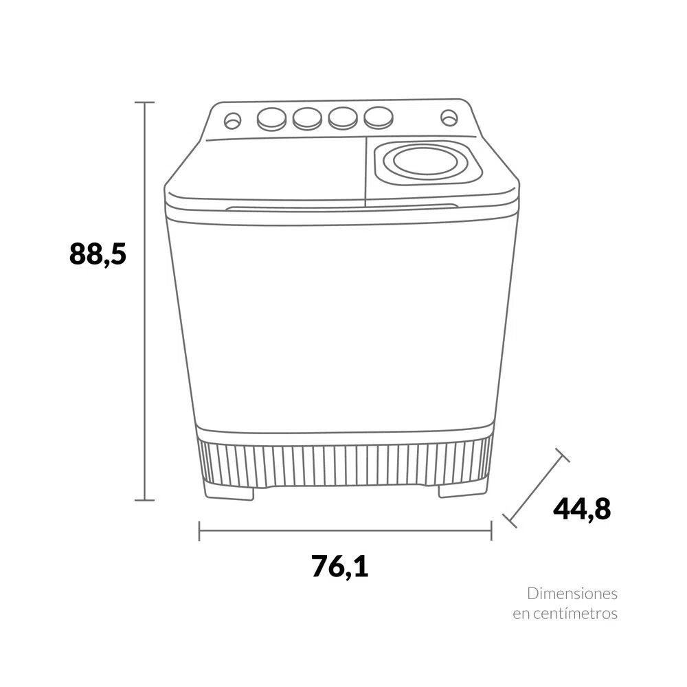 Lavadora semi-automática de 7 Kg. (15 lb) de capacidad, con 2 programas de lavado y un centrifugado, motores independiente para lavado y centrifugado.