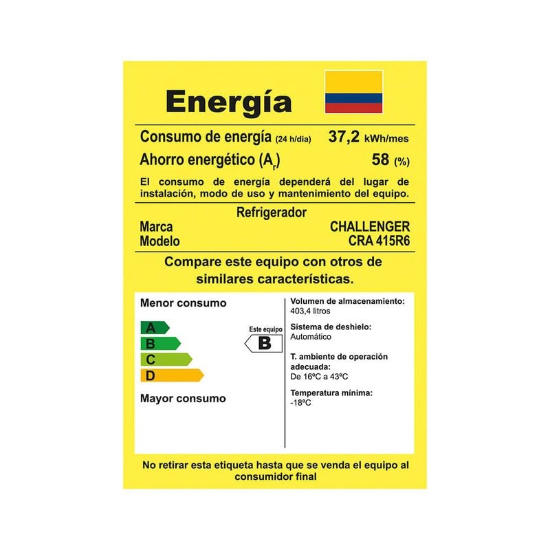 Nevera Challenger No Frost - Serie eCool - 415 Litros Brutos CRA 415