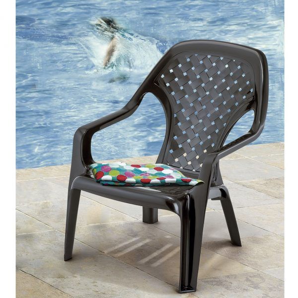 Silla playera plástica con soporte para brazos . Espaldar alto y diseño ergonómico. Ideal para playas, piscinas y espacios exteriores.