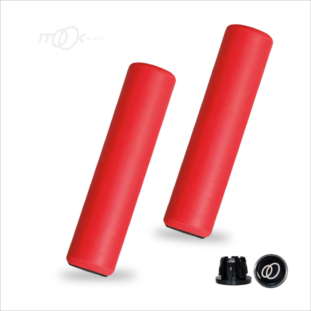 Mejora tu agarre con los grips de manillar ITOOK de silicona rojos. Diseño ergonómico para mayor confort.