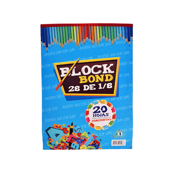 Block base 28 bond blanco de 20 hojas tamaño 1/8 de pliego marca RAIRAN