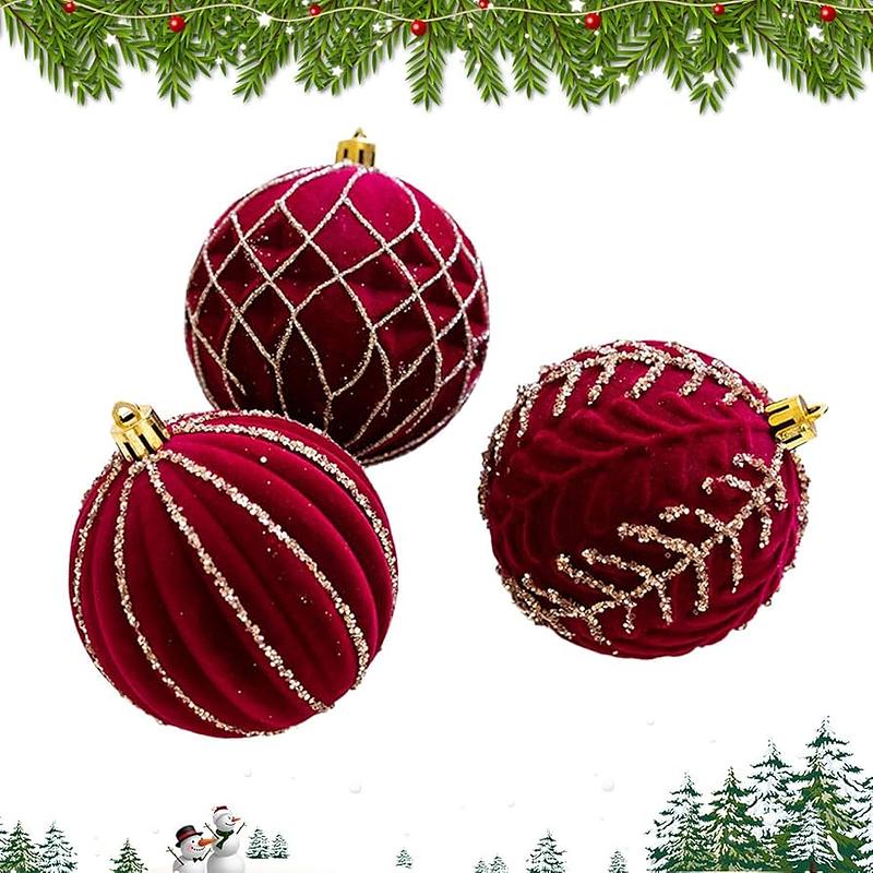 Bolas navideñas con malla decorativa, set de 3 esferas en colores tradicionales.