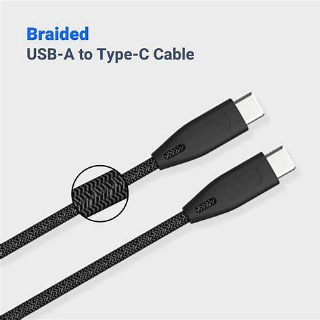 Cable cargador USB tipo C trenzado resistente.