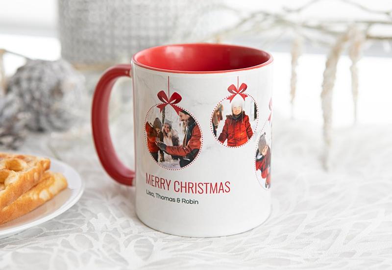 Pocillo navideño en porcelana con diseño festivo, referencia A1, ideal como regalo o uso personal.