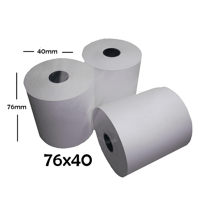 Completa línea de rollos elaborados en papel bond, Para uso en sumadoras, calculadorras, sistemas POS, registradoras, cajeros automaticos, y en general para todo tipo de maquinas que registren y controlen operaciones. Medida 76mm x 40mts.