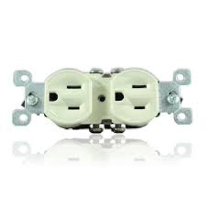 Toma Leviton con polo a tierra, colores amarillo y negro.