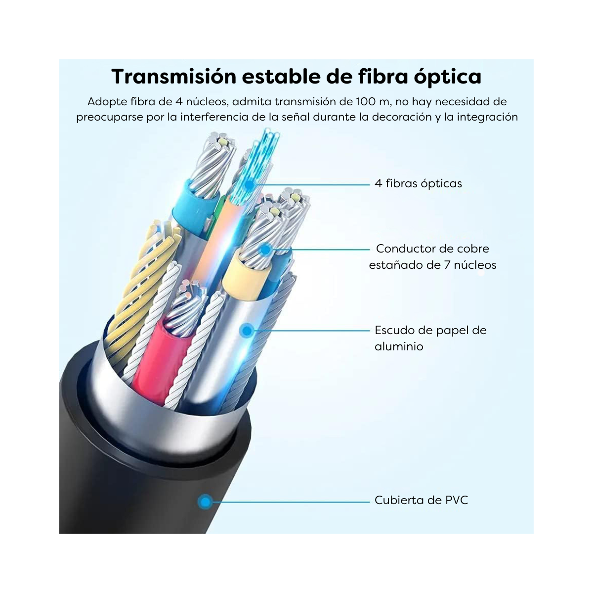 Cable de fibra óptica HDMI: el cable HDMI óptico activo 4K de alta velocidad (fibra de vidrio + cobre) conecta dispositivos a largas distancias.