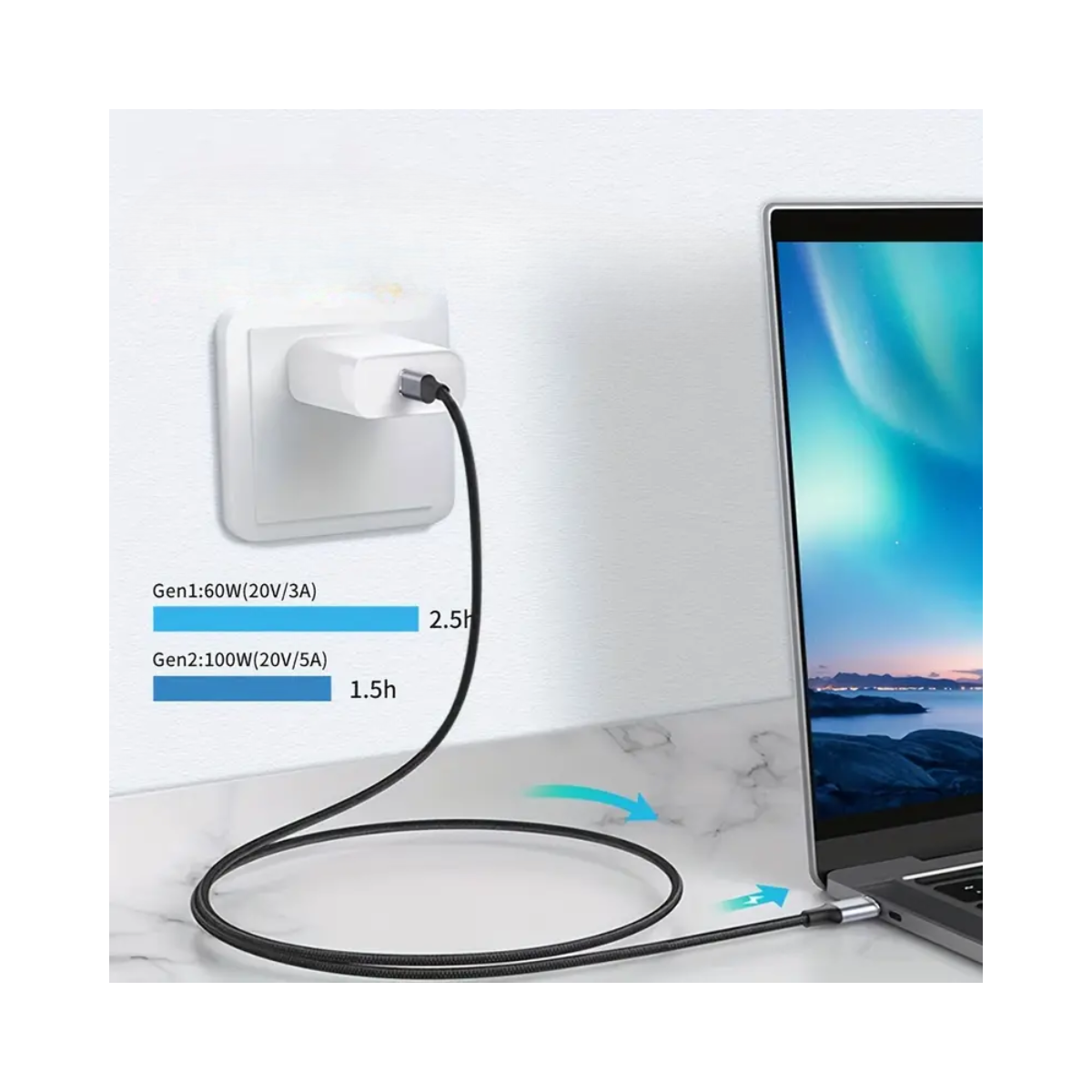 Carga rápida de 100W, fuerte y eficiente, soporte para cargar computadoras portátiles, tabletas, teléfonos móviles. Protocolo USB 3,1 Gen 2, admite transferencia de datos, hasta 10Gbps. Multiefecto en uno, no importa para la oficina o el entretenimiento, solo necesita un cable.