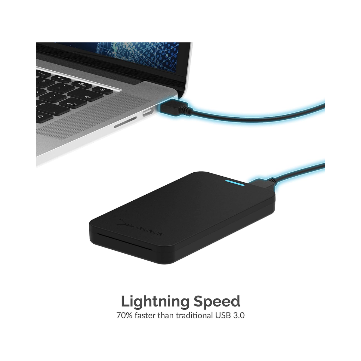 Conecta un disco duro externo portátil USB 3.0 a una computadora para una transferencia de archivos rápida.