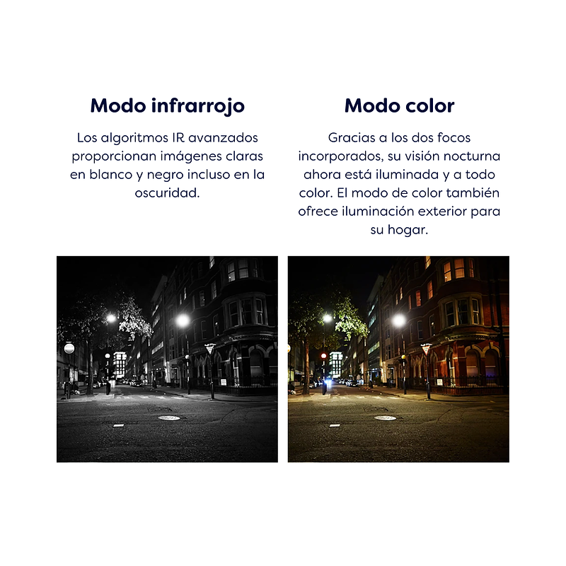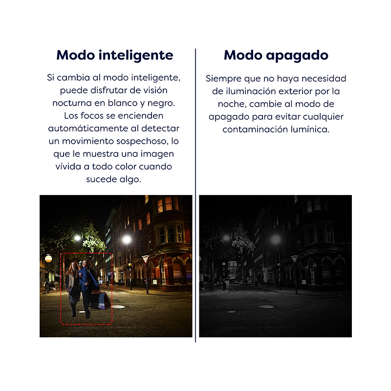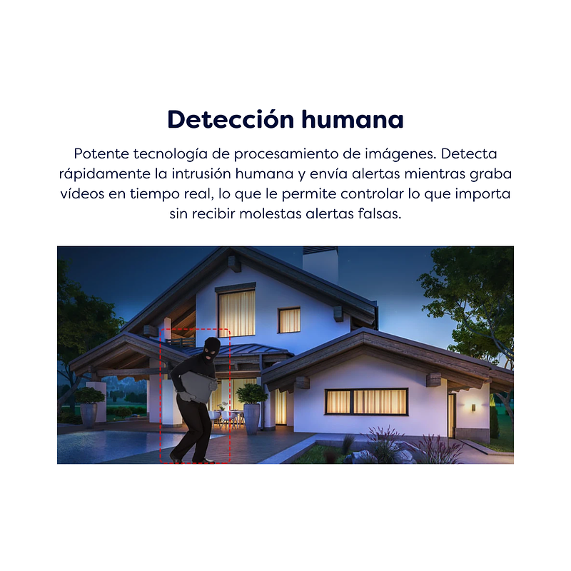 Sirena incorporada | Seguimiento inteligente | Modo de privacidad | Alarma de sonido anormal | Visión nocturna | Audio bidireccional | Nube.