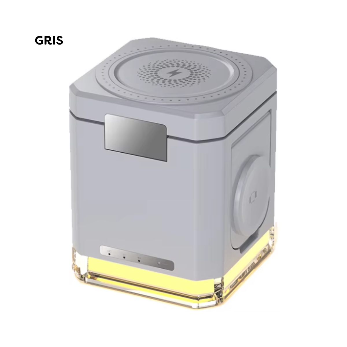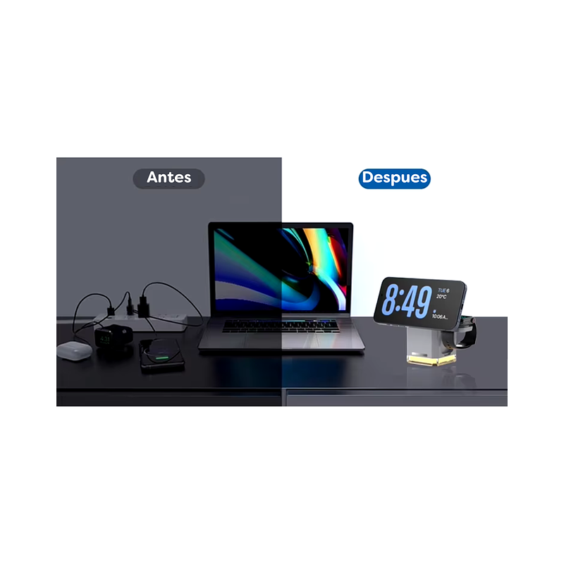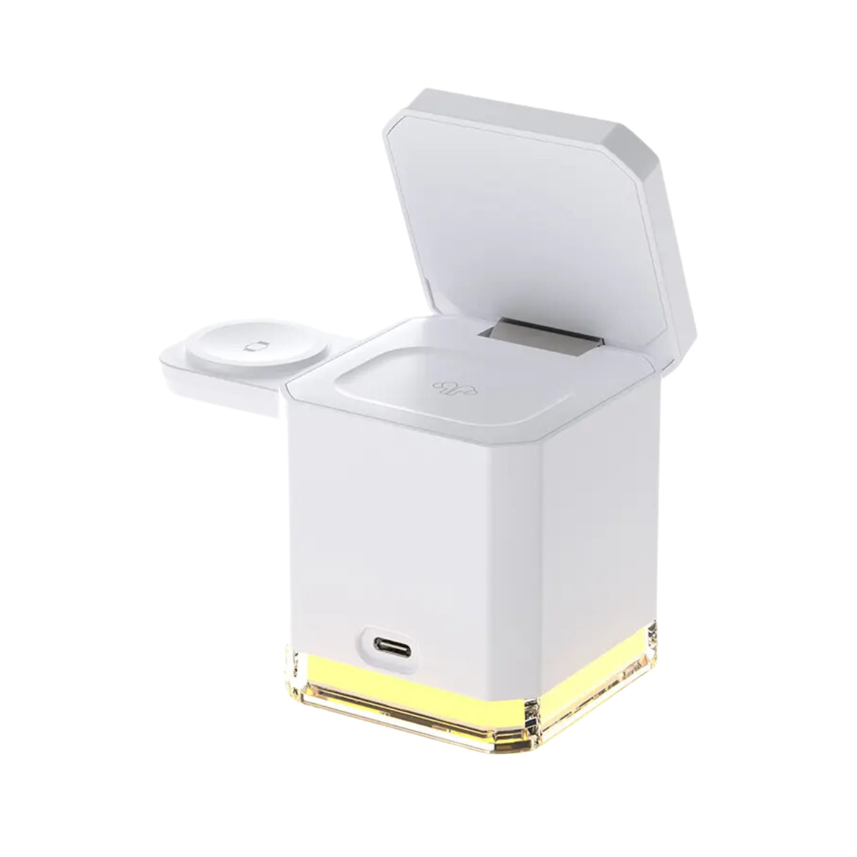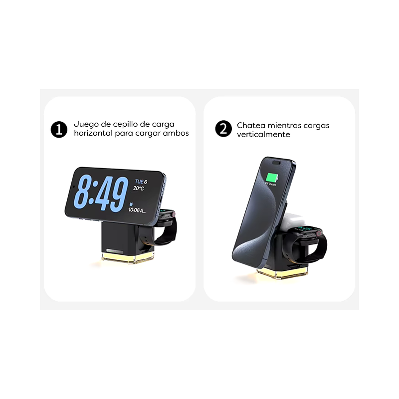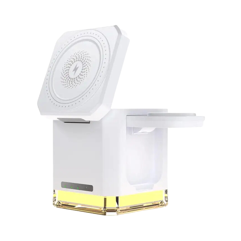 Cubo de 15W Max Carga rápida inalámbrica plegable para Iphone, reloj inteligente y audifonos, conecta 3 productos a la misma vez.
