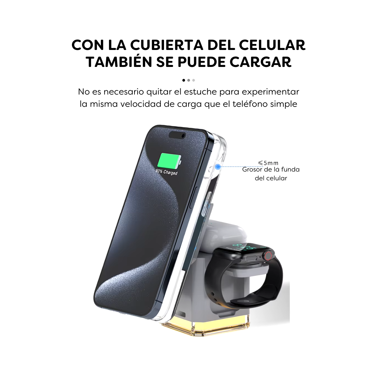 Cargador Inalámbrico Magnetico De Celular Con Lampara 3 En 1