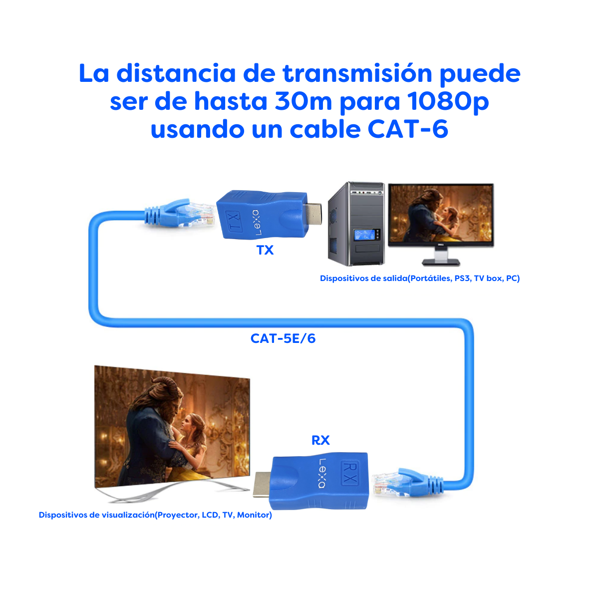 Importante: tenga en cuenta que para alcanzar los 30 metros se recomienda usar solo cable de red CAT6.