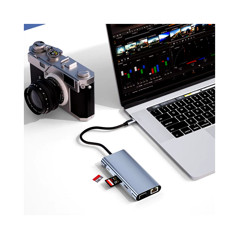 Interfaz: USB 3,0, 2 USB 2,0, carga PD, USB-C, compatible con HDMI, VGA, tarjeta TF/SD, RJ45.