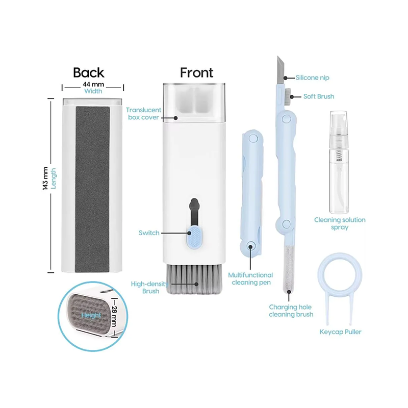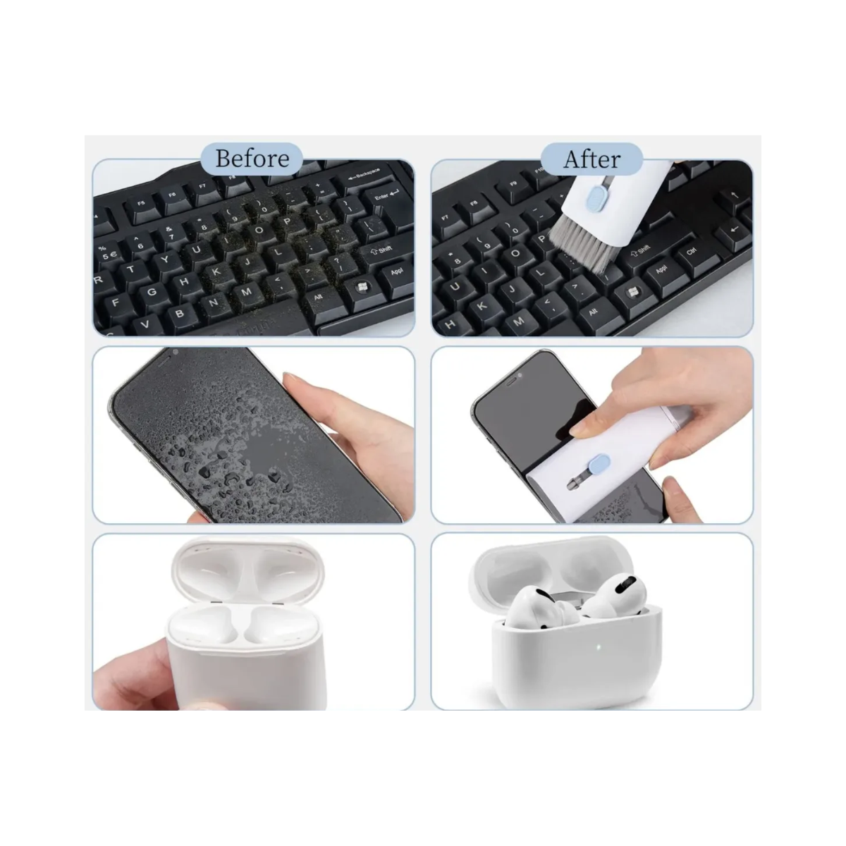 Características: 7 en 1: Herramienta de limpieza todo en 1 para laptop y auriculares, incluyendo bolígrafo de limpieza para Airpod con clip de silico