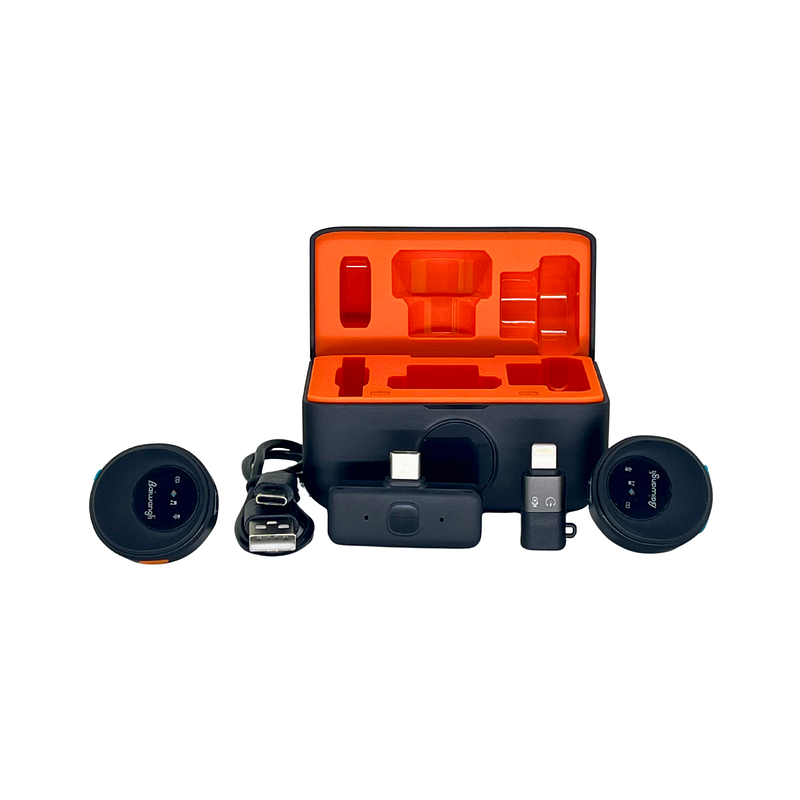 Micrófono Inalámbrico Baiwongli – Lavalier Dual con Estuche de Carga | Compatible con iPhone y Android (Lightning + USB‑C)