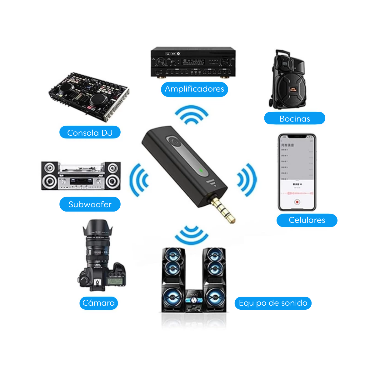 Transmisor y receptor recargables: el transmisor y el micrófono tienen baterías recargables incorporadas, el transmisor y el micrófono se pueden utilizar hasta 6 horas después de aproximadamente 2 horas de carga. Transmite hasta 20 metros en campo abierto.