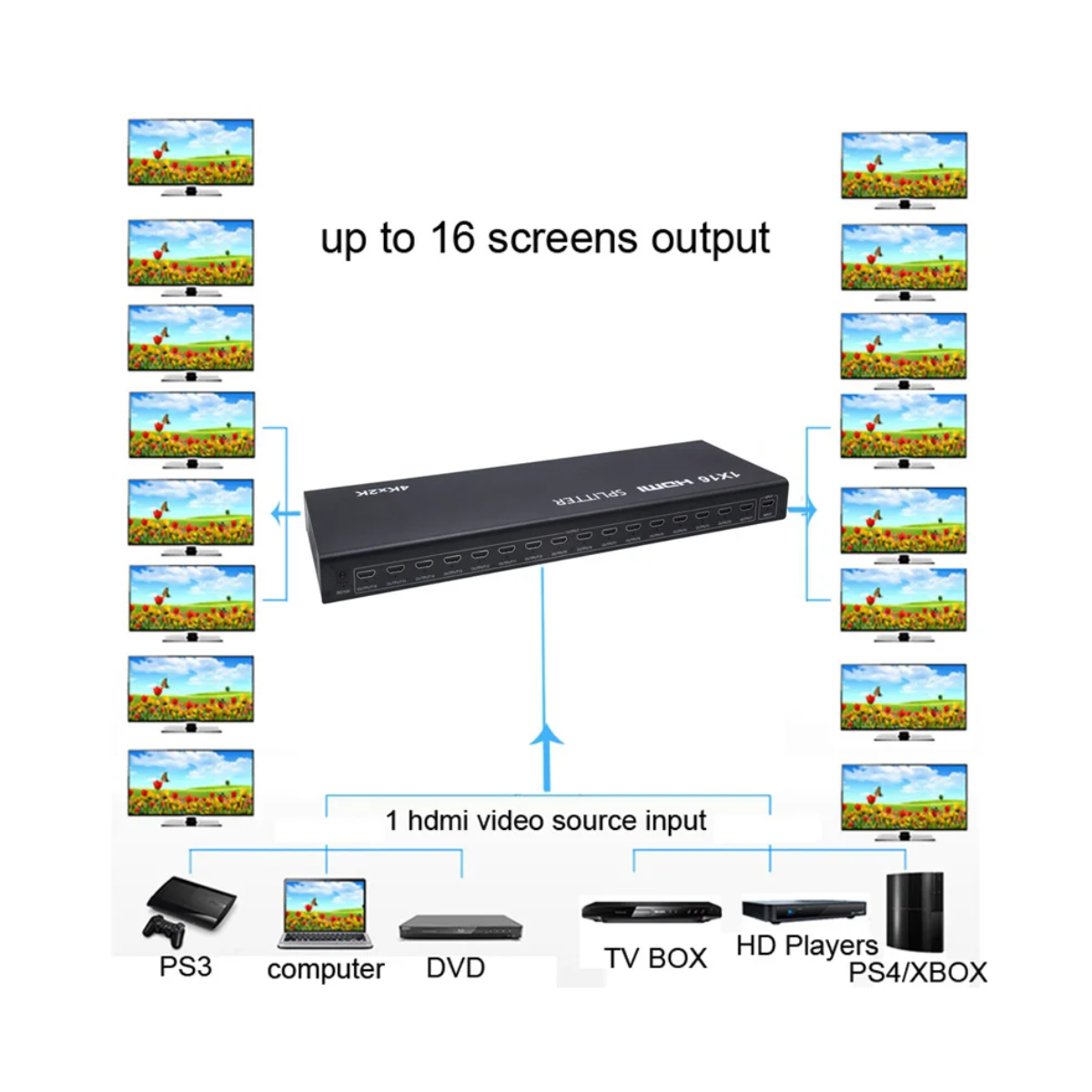 Divisor de pantalla de 1 un puerto HDMI A 16 Puerto HDMI