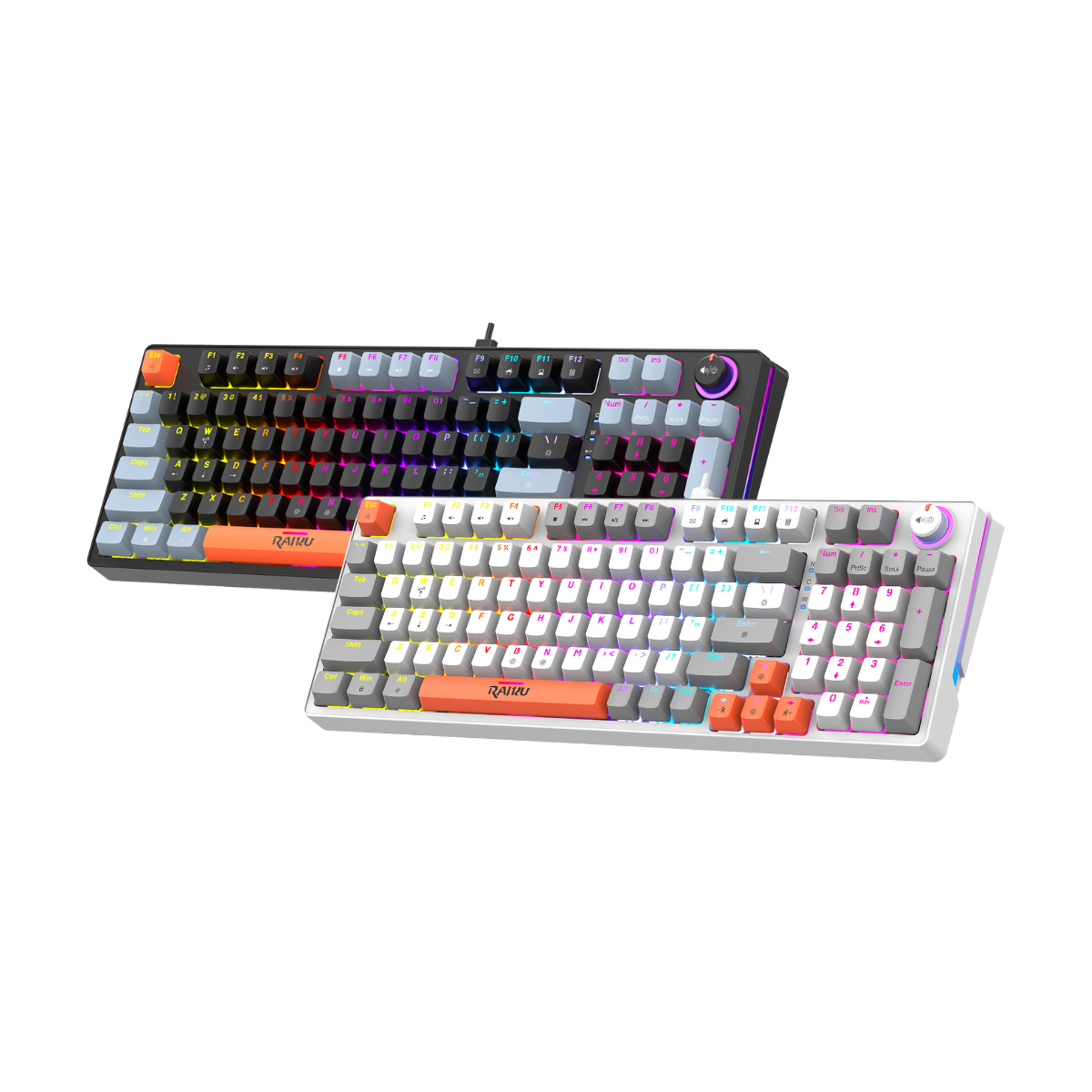 Teclado Gamer K98 RGB con iluminación dinámica, teclas resistentes y respuesta rápida. Diseño moderno ideal para largas sesiones de juego.