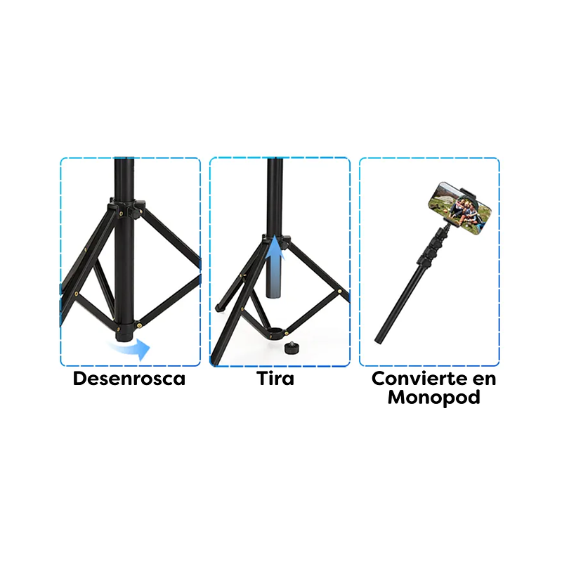 Diseño compacto y liviano, las patas ajustables y el cabezal panorámico de tres direcciones del trípode lo hacen ideal para fotografía y videografía.