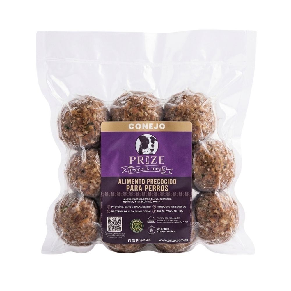 Albóndigas precocidas de conejo para perro, alimento 100% natural. Listas para comer o asar en parrilla. Domicilio en Villavicencio.