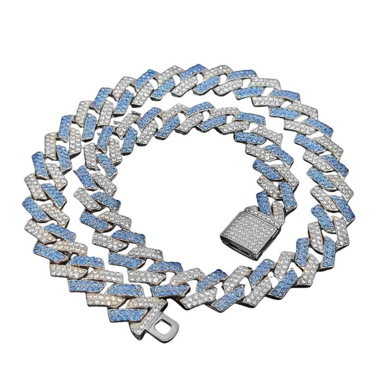 Cadena de lujo eslabonada con pedrería, azul con plateado- escoge tu talla: S20cm, M 40cm, L 60cm