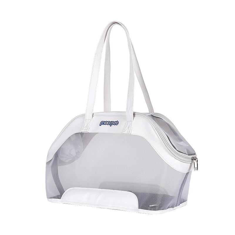 Bolso para mascota en malla con bordes en cuero